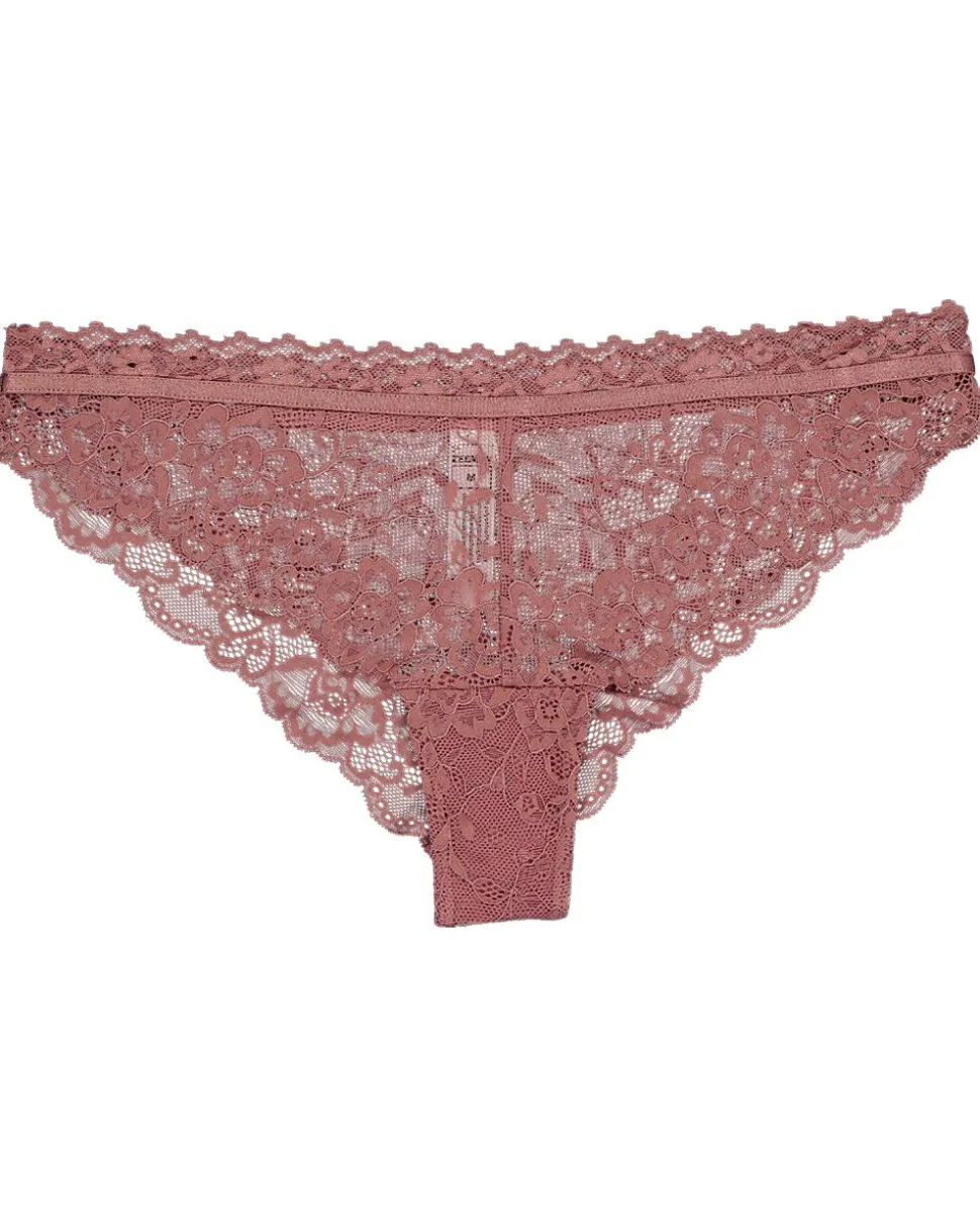 Ce slip brésilien rose pour femme est fabriqué en dentelle souple. Le tissu est composé de 90 % de polyamide et 10 % d’élasthanne. Cela donne une coupe douce et confortable qui est légèrement extensible. Le slip a un joli motif floral et une fine bande élastique en haut.