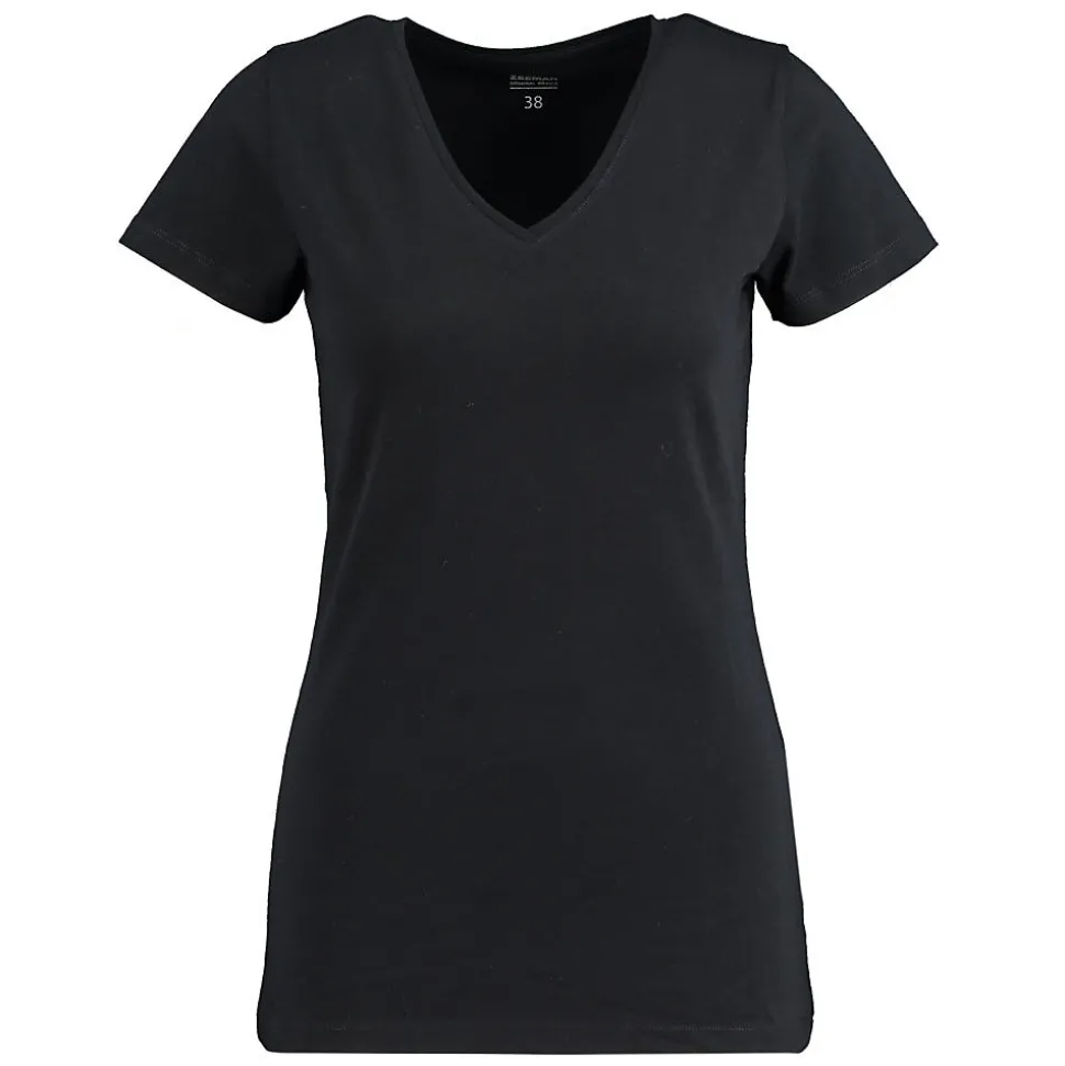 Ce tee-shirt noir pour femme à manches courtes et col V est respirant et confortable. Composé à 95 % de coton et 5 % d’élasthanne, le tee-shirt est doux au toucher et légèrement extensible. Son design uni se marie facilement avec d’autres vêtements. Ce tee-shirt est agréable à porter lors des journées chaudes ou sous un cardigan.