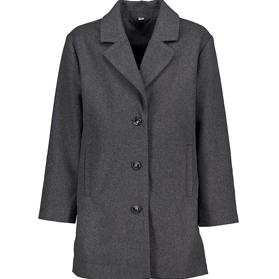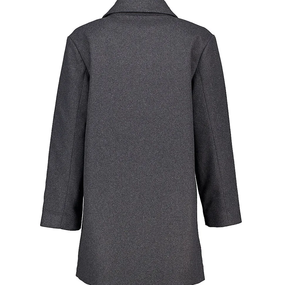 Ce manteau gris pour fille a un col à revers classique et se ferme avec trois boutons. Il s’attache facilement et reste bien en place. Les manches longues apportent de la chaleur supplémentaire. Les deux poches offrent de la place pour les petits objets, faciles à emporter. Le tissu en polyester avec un peu de laine est solide et agréable à porter.
